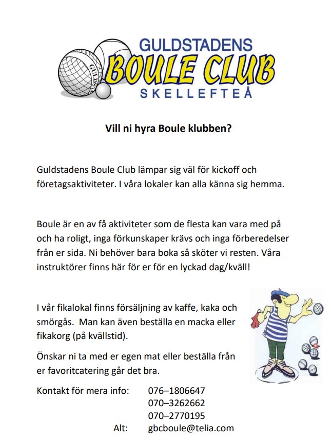 Följ oss för uppdateringar| Hyra boulehall 1 | |